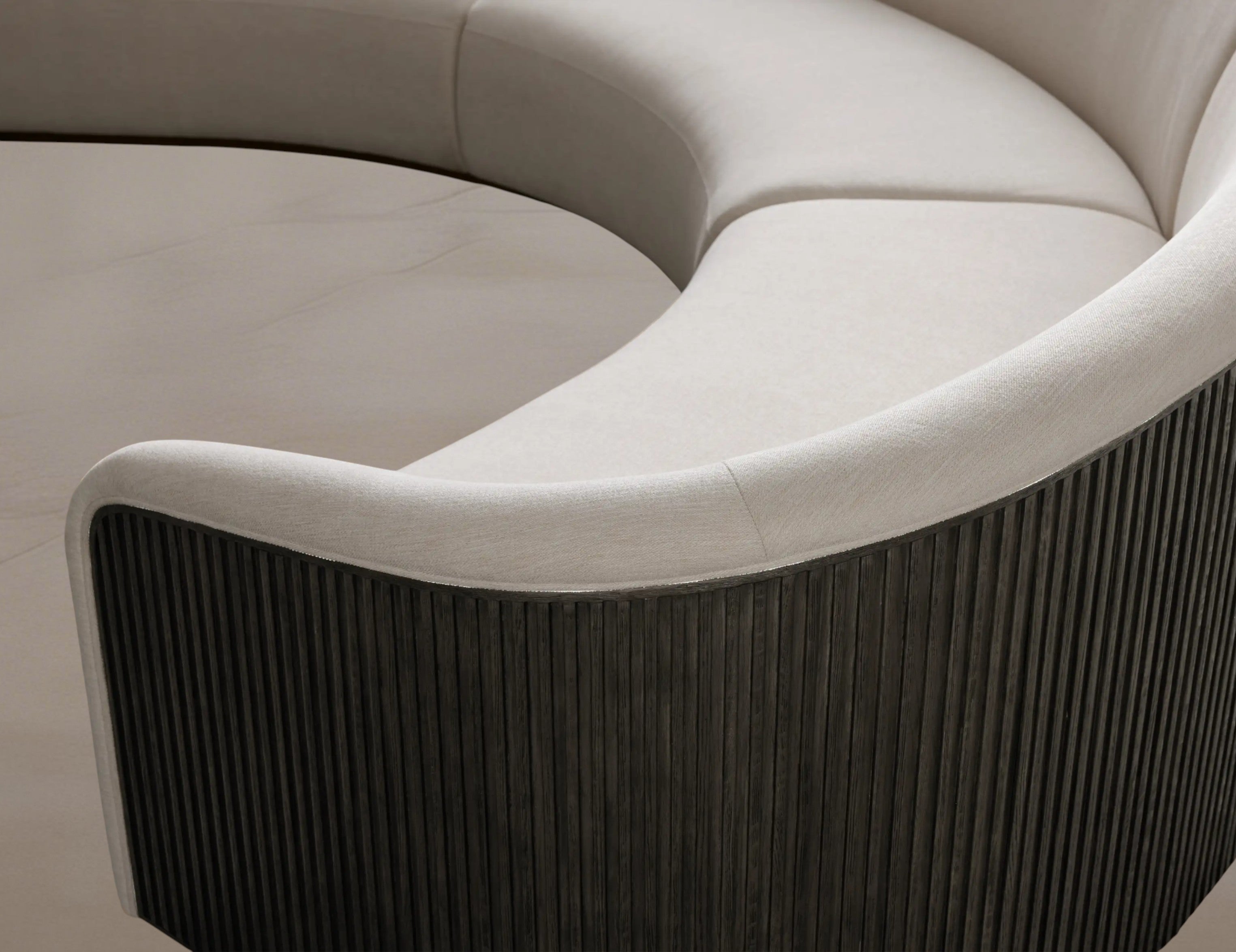 This living collection blends rich materials with relaxed comfort to create seating that feels both refined and inviting. Hand-finished hardwood frames are paired with reeded detailing and tailored upholstery, striking a balance between architectural structure and lounge-worthy softness.